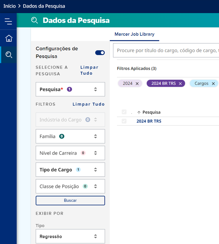 Após isso, você será levado à página “Dados da Pesquisa”, onde é possível realizar filtros e ajustes.