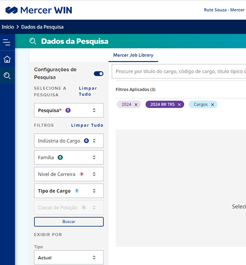 Após isso, você será levado à página “Dados da Pesquisa”, onde é possível realizar filtros e ajustes.